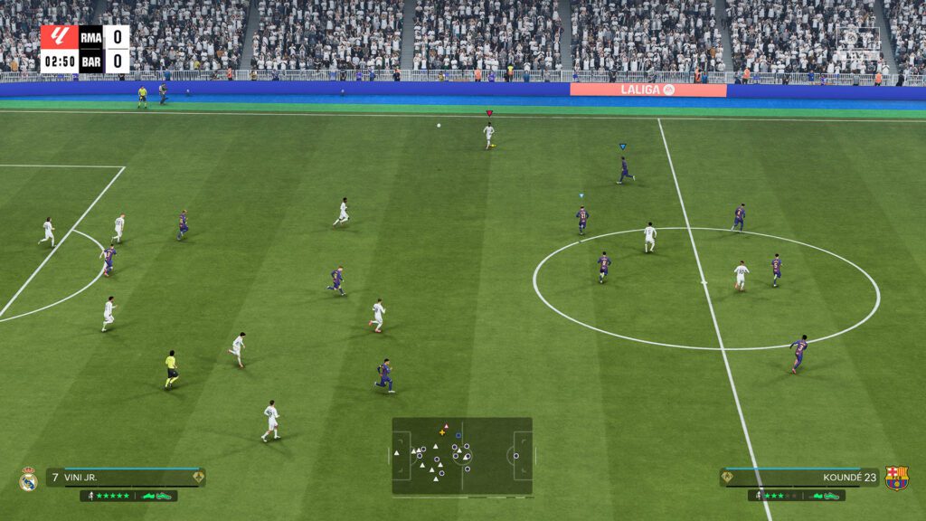 جدای از این تغییرات کلی، جزئیات دیگری هم به FC 26 اضافه شده تا واقعا بتوانیم آن را اثری متفاوت نسبت به نسخه قبلی بدانیم. به شخصه یکی از مهمترین تغییراتی که در بازی دیدم، گیم پلی دروازهبانها بود. اگر یادتان باشد، تقریباً هر شوتی که در FC 25 میزدیم به کرنر تبدیل میشد و گلرها کلاً اعتقادی به گرفتن توپ نداشتند. در این نسخه ولی نه تنها توپ را کامل مهار میکنند، بلکه سیوهای دو مرحلهای آنها هم همیشه به کرنر نمیرود و سیستم جدید کاری میکند تا هر توپ به شکلهای مختلفی دفع شود و ریباندها بسیار کمتر شوند. همین تغییرات مثبت را در نحوه دفاع کردن هم میتوانیم ببینیم. یکی از رومخترین بخشهای نسخه قبلی، این بود که وقتی توپ را از حریف میگرفتید، خیلی سریع دوباره توپ به پای بازیکن حریف میخورد و جلوی پای او میافتاد؛ انگار که اصلا کاری نکردهاید. حال اما دیگر از این خبرها نیست و طبق وعدهای که سازندهها داده بودن این مشکل حل شده و مدافعان بهتر میتوانند توپ را کنترل کنند. در فوتبال واقعی، ریزترین جزئیات روی نتیجه بازی تاثیر میگذارند؛ شرایط جوی از برف و باران گرفته تا بادهای شدید و کلی عوامل دیگر. در گیم پلی Authentic، باد میتواند جهت سانترها و حتی شوتها را تغییر دهد و حالا روی مینی مپ پایین تصویر، میزان شدت باد هم به نمایش گذاشته شده تا بازیکنان بفهمند که باید مثلا نوار قدرت سانتر را چه قدر پر کنند. این مقدار توجه به جزئیات از طرف EA واقعاً غافلگیرکننده بوده و باید گفت که آنها برای این که نشان دهند به حرف طرفداران گوش کردهاند، سنگ تمام گذاشتهاند. یکی دیگر از جزئیات بازی که به نظرم حسابی میتواند کاربردی باشد، اضافه شدن دو تا اطلاعات اضافه در Player Bar پایین صفحه بازی است. تا حالا شده که وسط بازی ندانید کدام بازیکن راست پا یا چپ پا است یا این که اصلا توانایی اجرای Skillها را دارد یا نه؟ در FC 26 زیر اسم هر بازیکن، چند ستاره بودن مهارتهای آن مشخص شده، این که راست پا یا چپ است و این که چهقدر روی پای غیرتخصصی آن میتوانیم حساب کنیم هم نمایش داده میشود؛ با این کار دیگر مجبور نیستید که وسط بازی وارد منوی ترکیب تیم شوید و اطلاعات هر بازیکن را حفظ کنید.