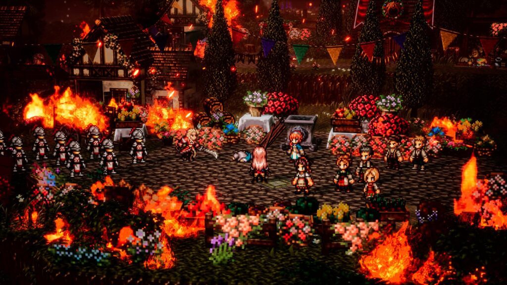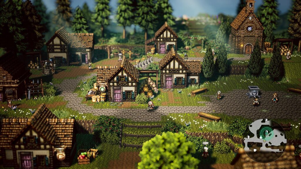 هسته گیمپلی Octopath Traveler 0 همچنان بر مبارزات نوبتی کلاسیک استوار است؛ جایی که سیستم Break and Boost و مدیریت منابع نقش اساسی را دارند. این سیستم که حالا برای طرفداران مجموعه کاملاً آشناست، در این نسخه با اصلاحات جزئی همراه شده که هدفشان افزایش انعطافپذیری و عمق تاکتیکی است. مبارزات در ساعات ابتدایی بازی ساده و آموزشی طراحی شدهاند تا بازیکن بهتدریج با مکانیکها آشنا شود. اما با پیشرفت در بازی، دشمنان هوشمندتر میشوند و استفاده نادرست از مهارتها یا چینش اشتباه تیم، باعث میشود تا بهسرعت بازیکن مجازات شده و مبارزه را از اول شروع کند. این شیب منطقی در افزایش سختی، یکی از نقاط قوت اصلی بازی بهشمار میآید و باعث بالانس شدن تجربه کلی بازی میشود. در کنار مبارزات، سیستمهای جانبی متعددی معرفی شدهاند که مهمترین آنها، شهرسازی و بازسازی شهر نابود شده (Wishvale) است. این سیستم نقش پررنگی در چرخه پیشرفت بازی دارد و بهطور مستقیم روی اقتصاد، دسترسی به تجهیزات و حتی برخی شاخههای داستانی تأثیر میگذارد. در بهترین حالت، شهرسازی حس مالکیت و مشارکت در جهان بازی را تقویت میکند؛ اما در بدترین حالت، به فعالیتی تکراری تبدیل میشود که ریتم کلی تجربه را کند میکند اما به لذت شما از بازی لطمهای وارد نمیکند. از طرف دیگر جهان Octopath Traveler 0 پر از مسیرهای فرعی، مناطق مخفی و مأموریتهای جانبی است که بسیاری از آنها داستانهای کوچکی را روایت میکنند. برخی از این مأموریتها بهطرز غافلگیرکنندهای عمیق و تأثیرگذارند و حتی میتوانند از خط داستانی اصلی پیشی بگیرند. اما همه محتواهای جانبی در این سطح نیستند. بخشی از مأموریتها بیش از حد ساده و تکراری طراحی شدهاند و بیشتر بهعنوان ابزاری برای افزایش زمان بازی عمل میکنند. انگار ساخته شدهاند تا بازیکن قدرت خود را بیشتر کنند. این نابرابری کیفیت، باعث میشود انگیزه بازیکن برای دنبال کردن تمام محتواهای جانبی کاهش یابد.