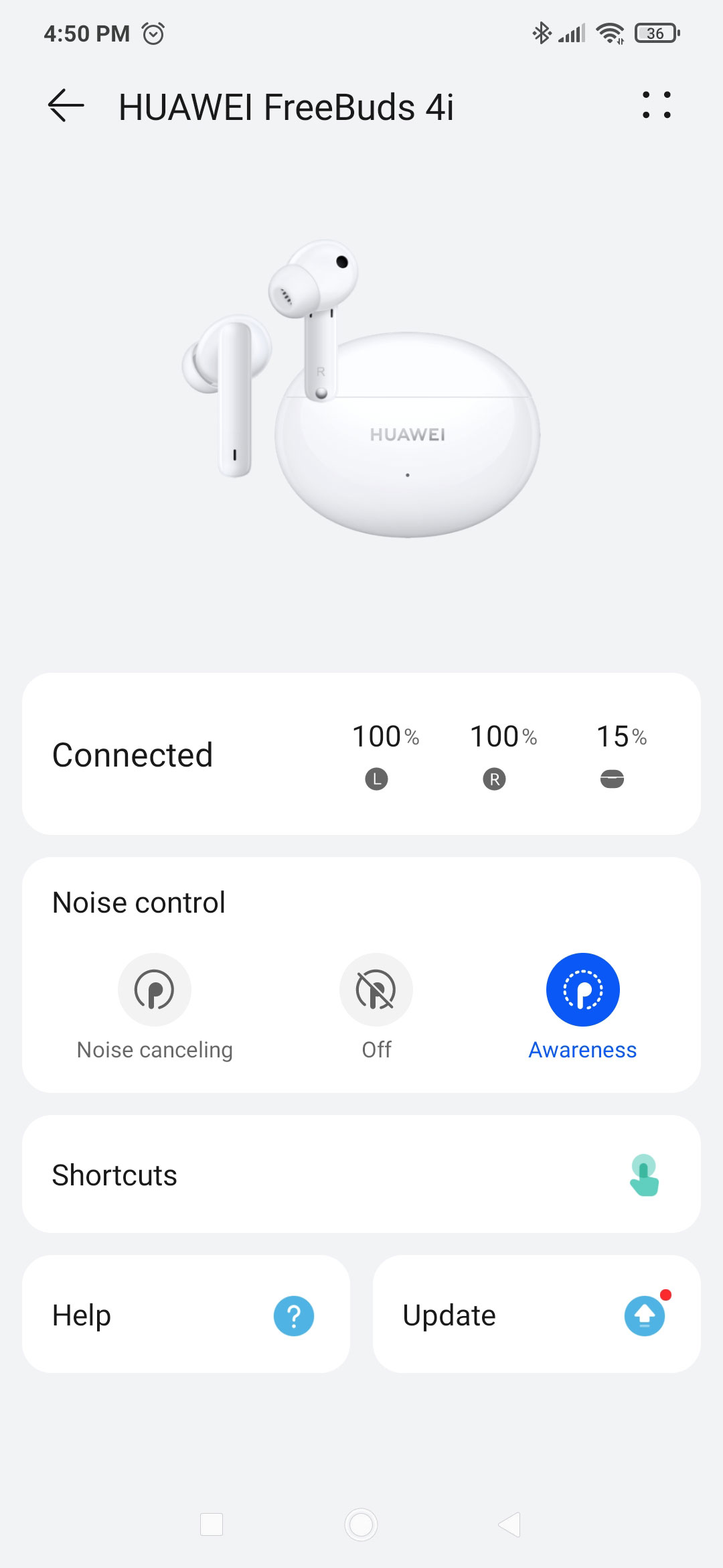 یکی از مهمترین ویژگیهای هر هدفون بیسیمی قابل دسترس بودن حداکثری آن است ؛ موضوعی که خوشبختانه Freebuds 4i در آن نمره کامل را دریافت میکند. این هدفون از ورژن 2/5 بلوتوث استفاده میکند در نتیجه با هر گوشی قادر هستید از این هدفون استفاده کنید و با توجه به استفاده از این ورژن خیالتان راحت است که در هیچ حالتی مشکلی در هنگام موسیقی یا پادکست گوش کردن نخواهید داشت و این هدفون با هر تلفن هوشمندی Pair میشود. حالا که صحبت از در دسترس بودن است باید این نکته را هم ذکر کرد که Freebuds 4i دارای سیستم دستورات مستقیم است. یعنی بعضی فرمانها بدون نیاز به استفاده از گوشی هم قابل اجرا هستند. البته تعداد این فرمانها به عدد 2 خلاصه میشود. نخستین فرمان برای متوقف کردن ترک است و برای این کار باید دو بار به بالای هدفون ضربه بزنید. فرمان دیگر فعال یا غیر فعال کردن سیستم حذف نویز یا همان ANC است – که کمی جلوتر به صورت مفصل آن را شرح دادهایم – که با نگه داشتن انگششتان به مدت چند ثانیه روی بخش بالایی هدفون فعال میشود. وجود این دو فرمان کار با Freebuds 4i بسیار راحت است. تنها نقطه ضعف بزرگ این فرمانها در محدود بودن آنهاست. مثلا فرمانی برای عوض کردن ترک یا کم و زیاد کردن صدا وجود ندارد. در طرفی دیگر این فرمانها با کمی تاخیر – 1 ثانیه – اجرا میشوند که هرچند مشکل بزرگی نیست اما در هر صورت موضوع اینجاست که در نهایت برای عوض کردن ترک و کم و زیاد کردن صدا به گوشی خود نیاز خواهید داشت. همچنین برای استفاده از تمامی قابلیتهای Freebuds 4i باید اپلیکیشن HUAWEI AI Life را روی گوشی خود نصب کنید. با نصب این اپلیکیشن میتوانید میزان شارژ ، آپدیتهای جدید ، فعال یا غیر فعال کردن سیستم کنترل نویز و فرمانهای دیگر را اجرا کنید.